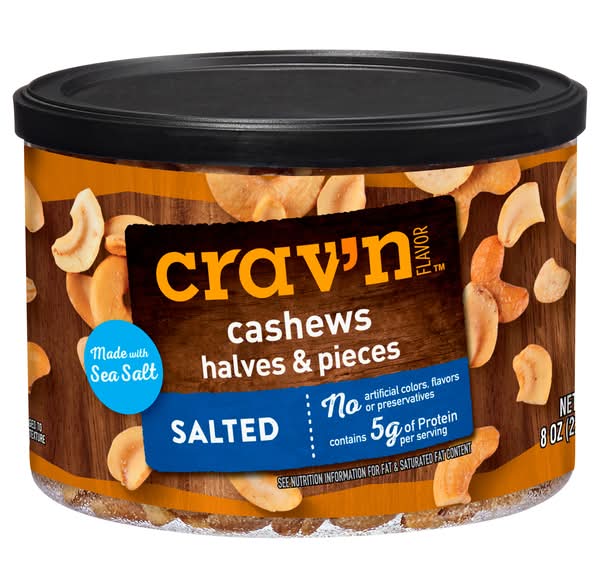 Crav'n Flavor Salted Cashews Halves & Pieces (8 oz)