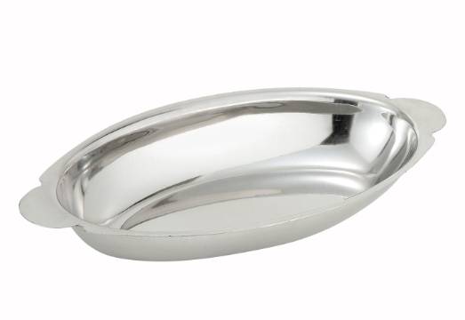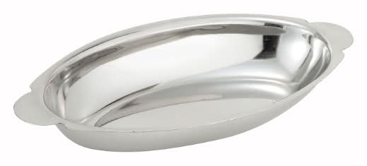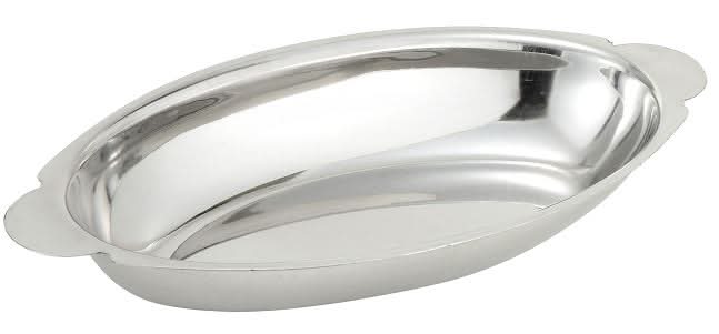 WinCo Foods Ado-8 Stainless Steel Oval Au Gratin Dish