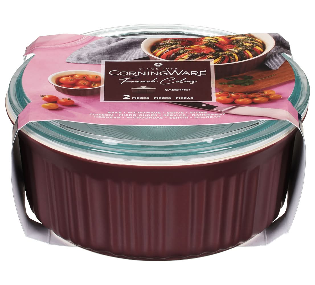 CorningWare French Colors Cabernet Round Dish With Glass Lid 1.5 Qt, Red (2 ct)