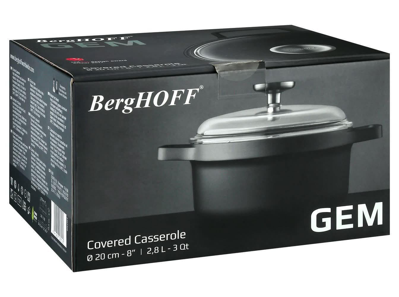 BergHOFF Gem 8" Non-Stick Covered Casserole, Black