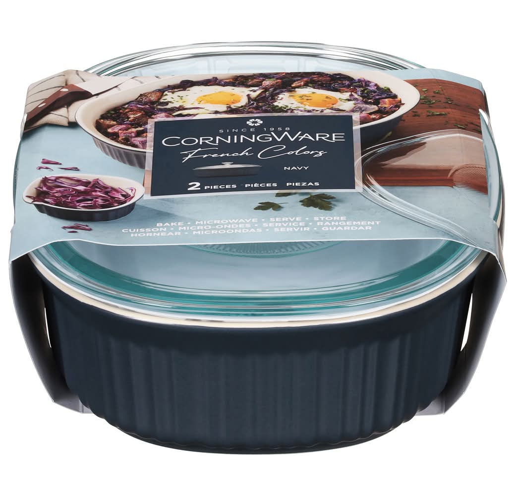 CorningWare French Colors Oval Dish With Glass Lid 2.5 Qt, 10.7X8.3X2.5 in, Navy (2 ct)