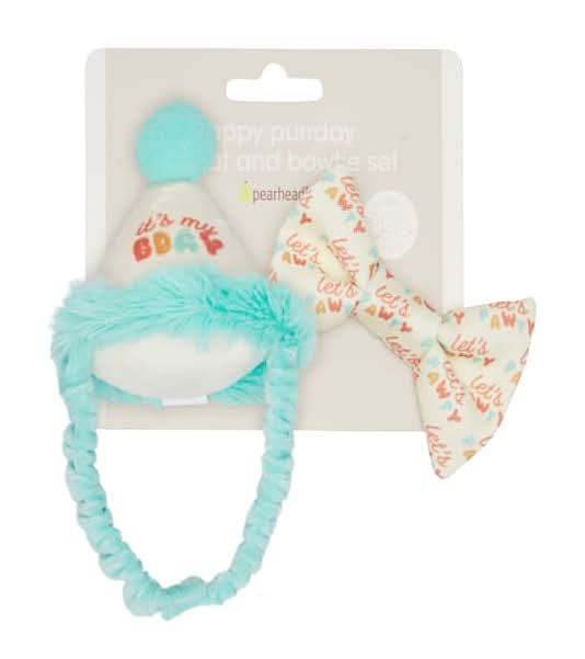 Pearhead Pet Happy Purrday Bowtie and Hat Birthday Set For Cats, White (2 ct)