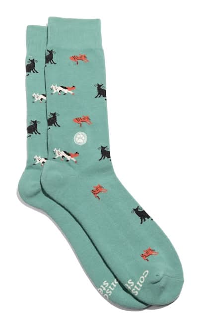 Conscious Step Frisky Felines Socks That Save Cats, M, Teal