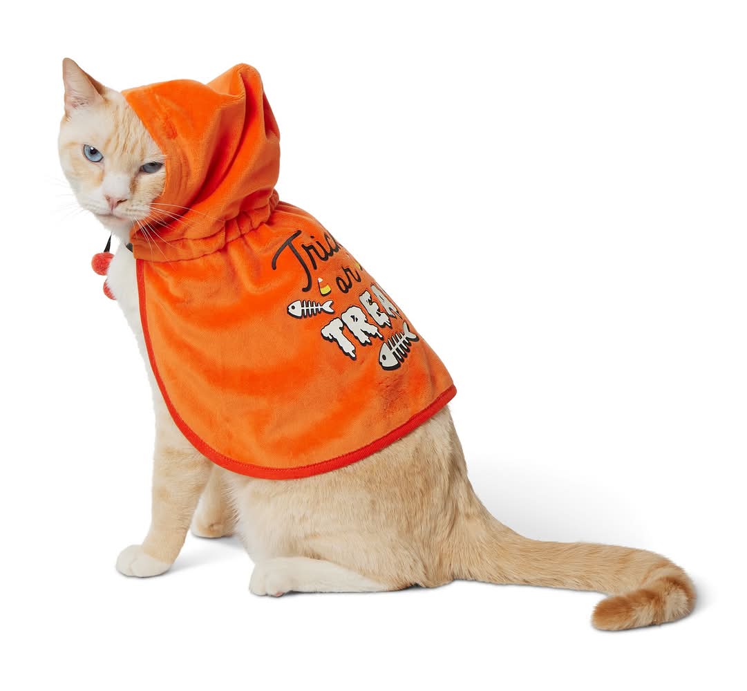 Thrills & Chills Cat Creature Of the Night Pet Cape, XS/S, Orange