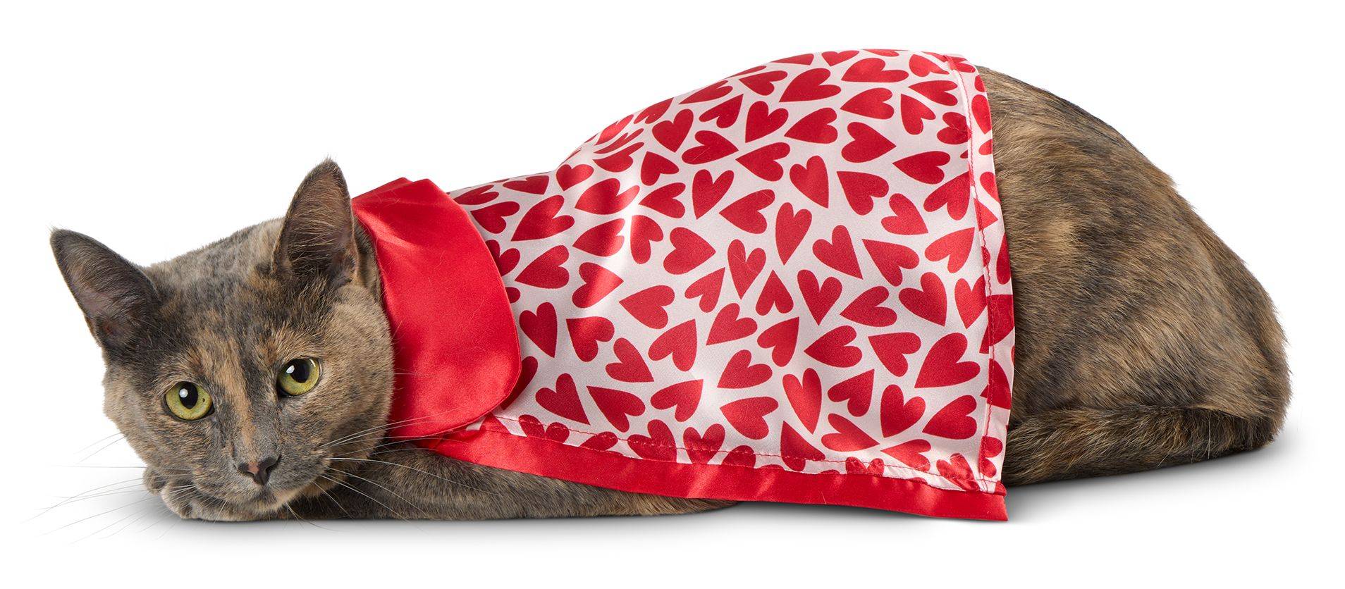 Whisker City Valentine's Day Hearts Cat Cape, Medium/Large, Red