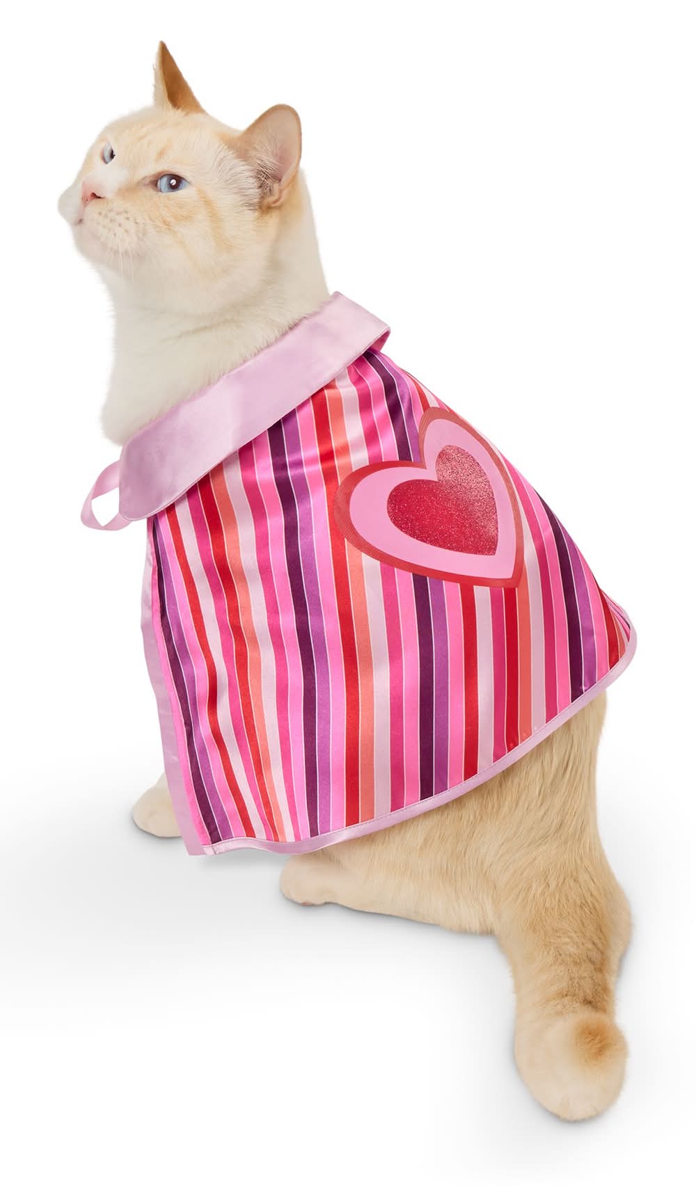 Whisker City Valentine's Day Stripes Cat Cape, Medium/Large, Assorted