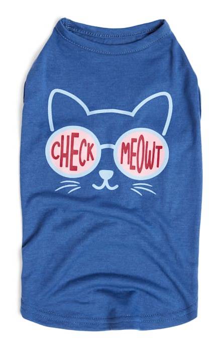 Youly Check Meowt Cat T-Shirt, Small, Blue