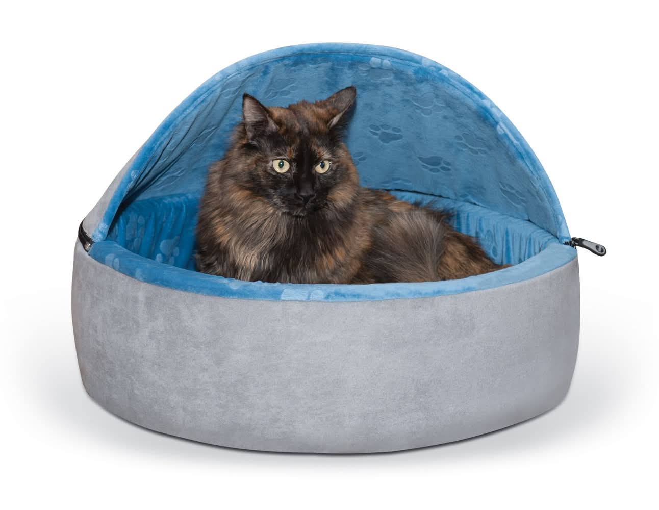 K & H Self-Warming Kitty Bed Hooded, Large-20 In X 6 In, Blue-Gray