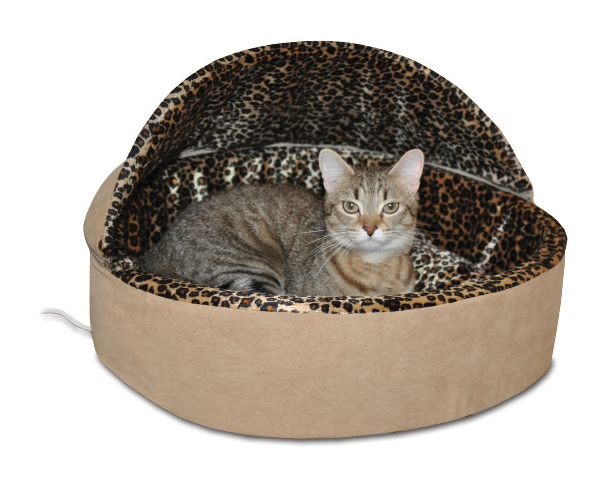 K & H Thermo-Kitty Sleephouse Heated Bed, 12 X 17 Inches, Tan/Leopard