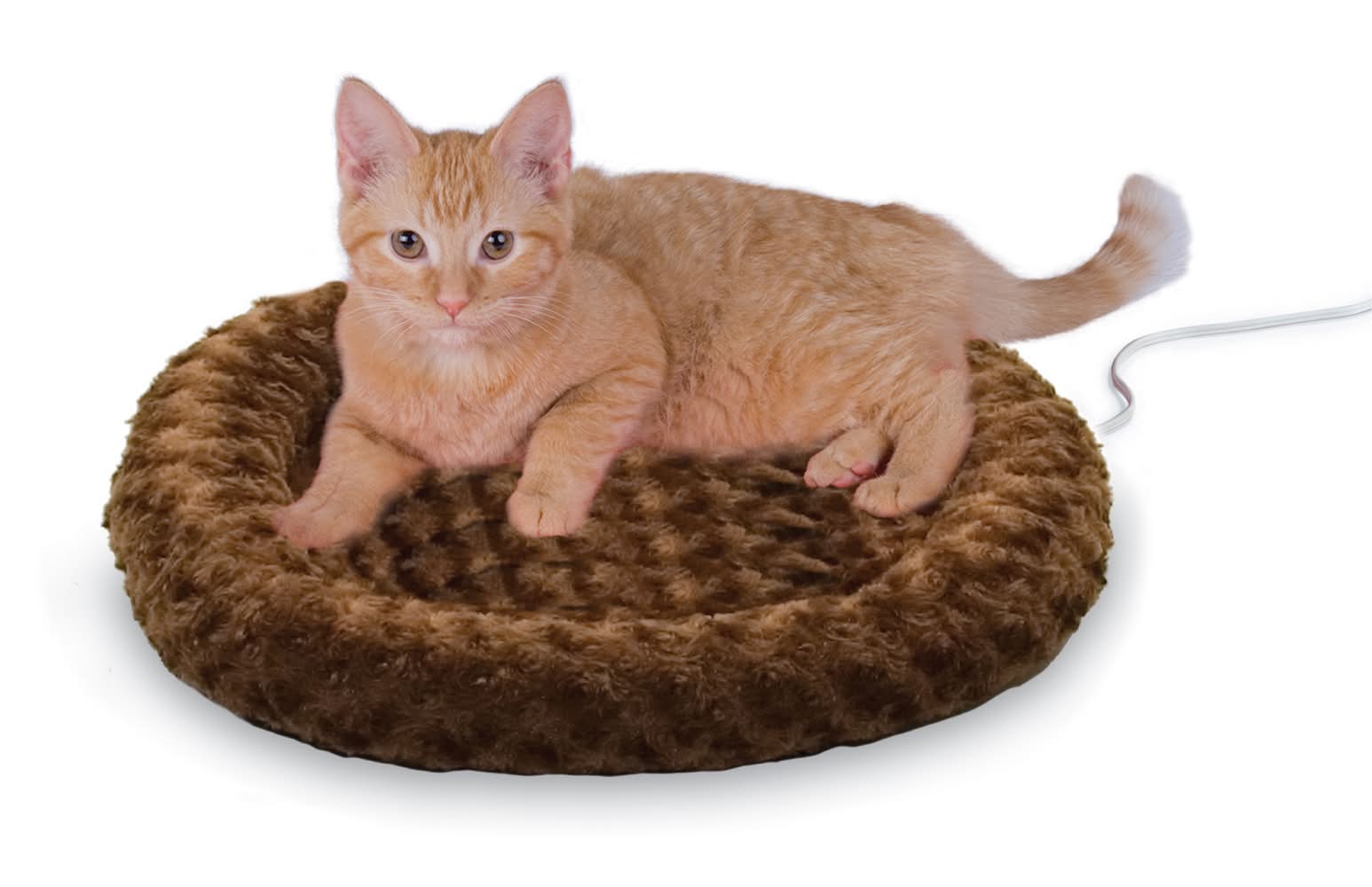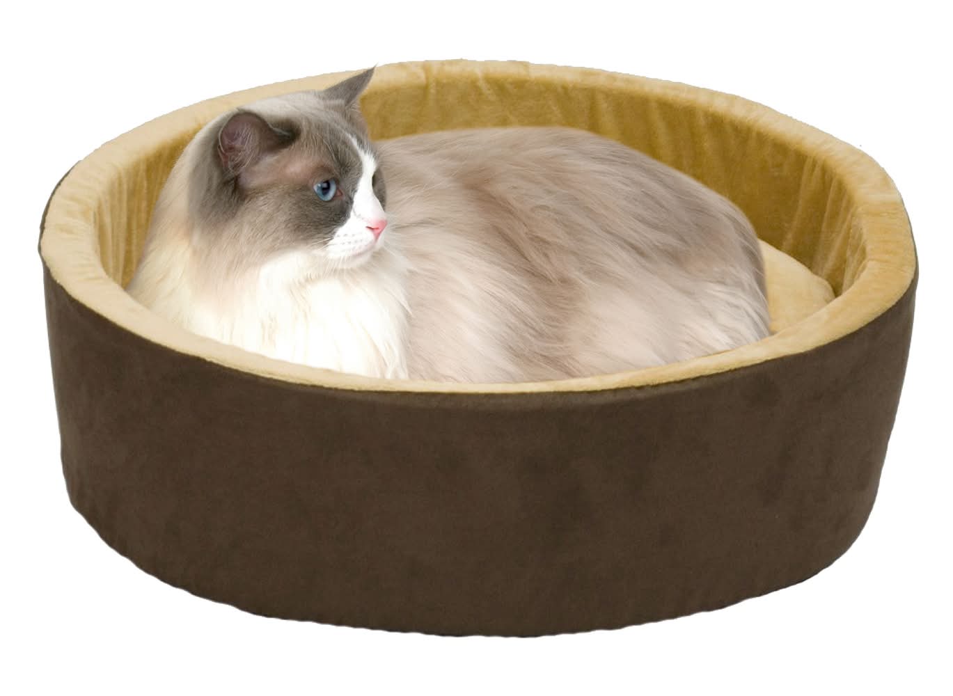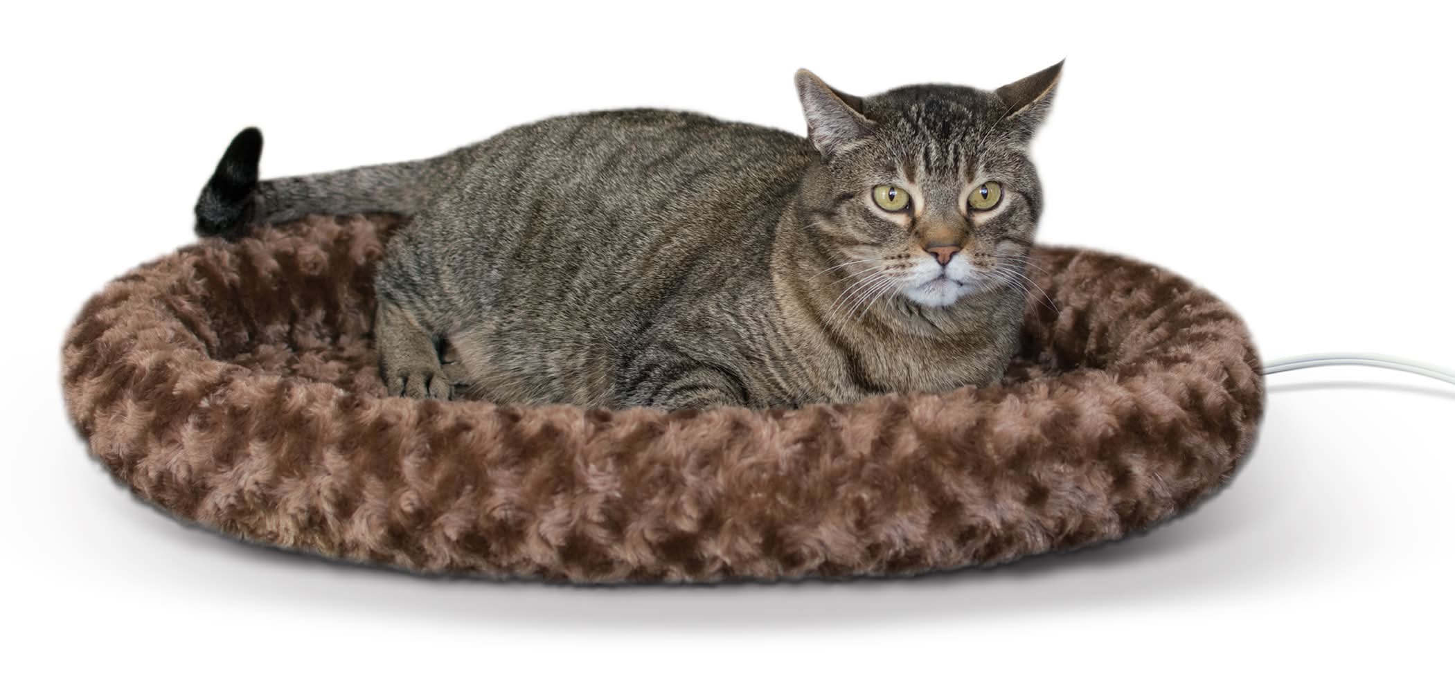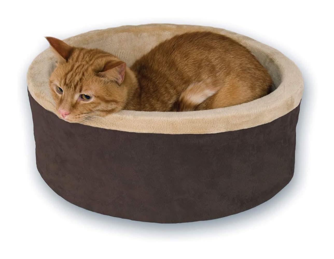 K & H Thermo-Kitty Bed Indoor Heated Cat Bed Mocha, Small 16 Inches