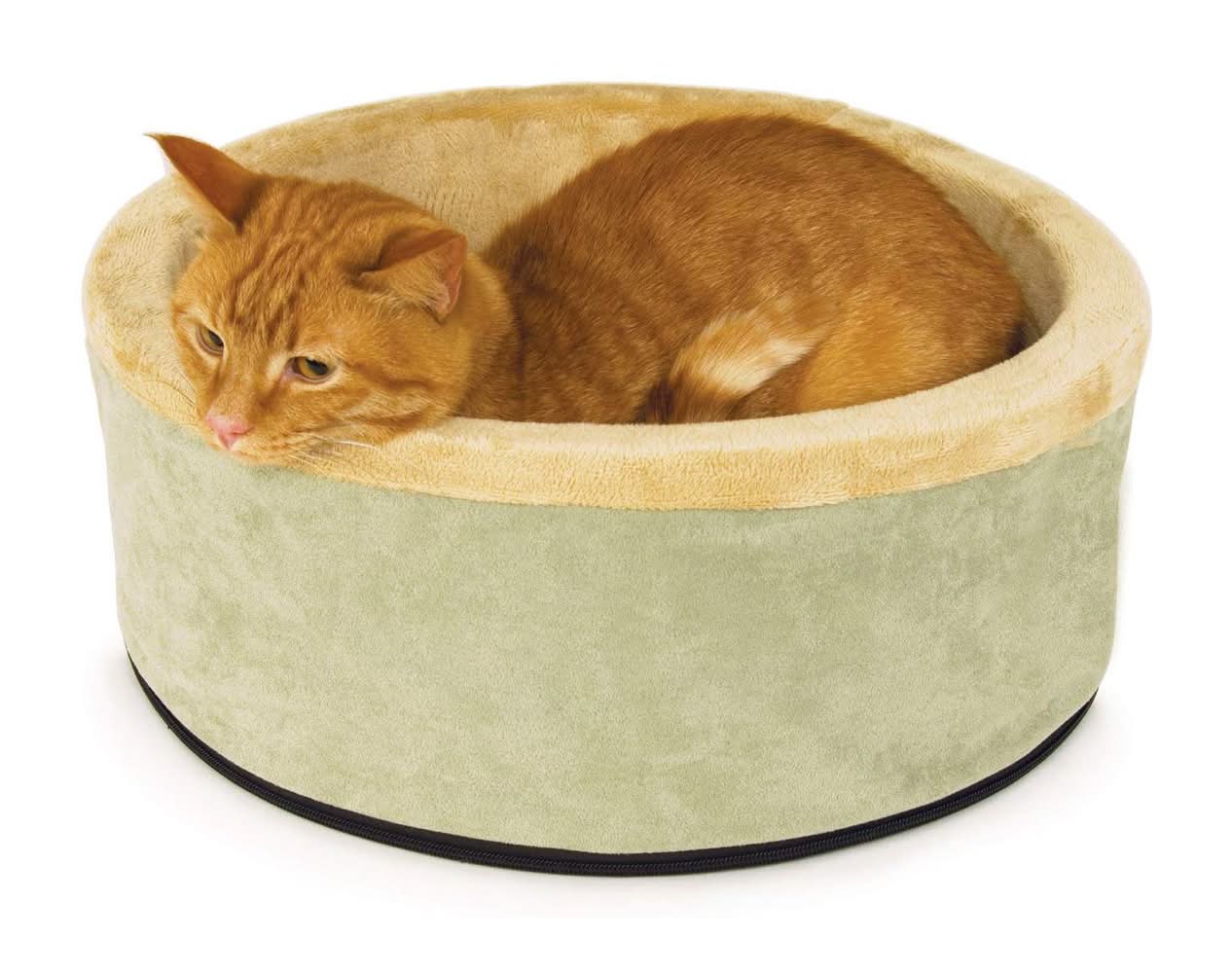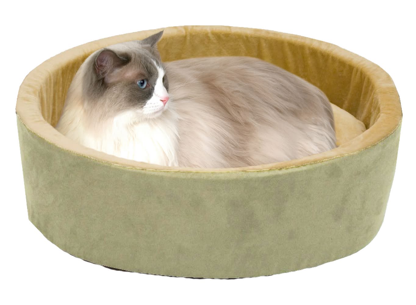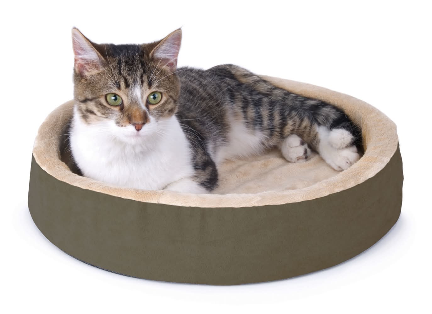 K & H Thermo-Kitty Bed Indoor Heated Cat Bed Sage/Tan, Large 20 Inches