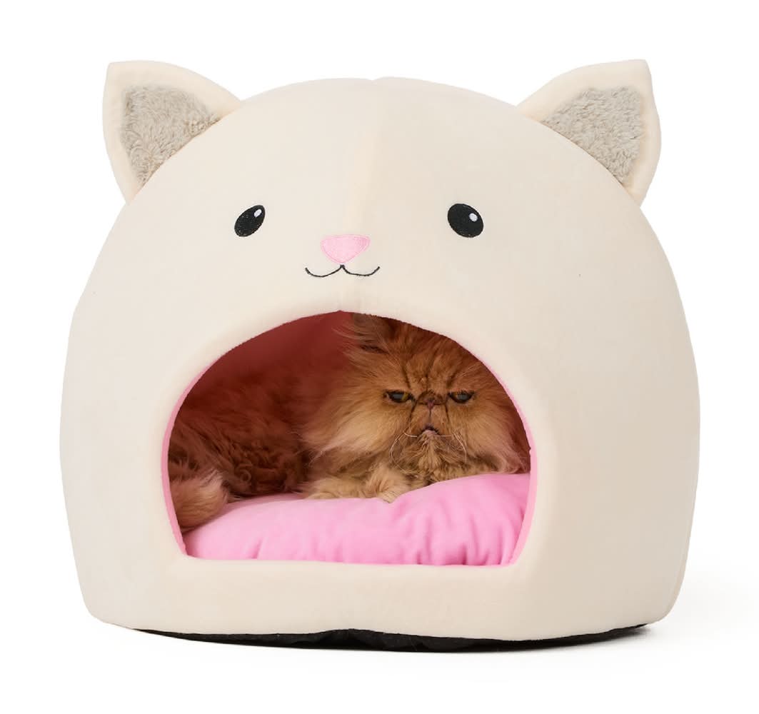 EveryYay Snooze Fest Ivory Cat Head Oval Snuggler Bed