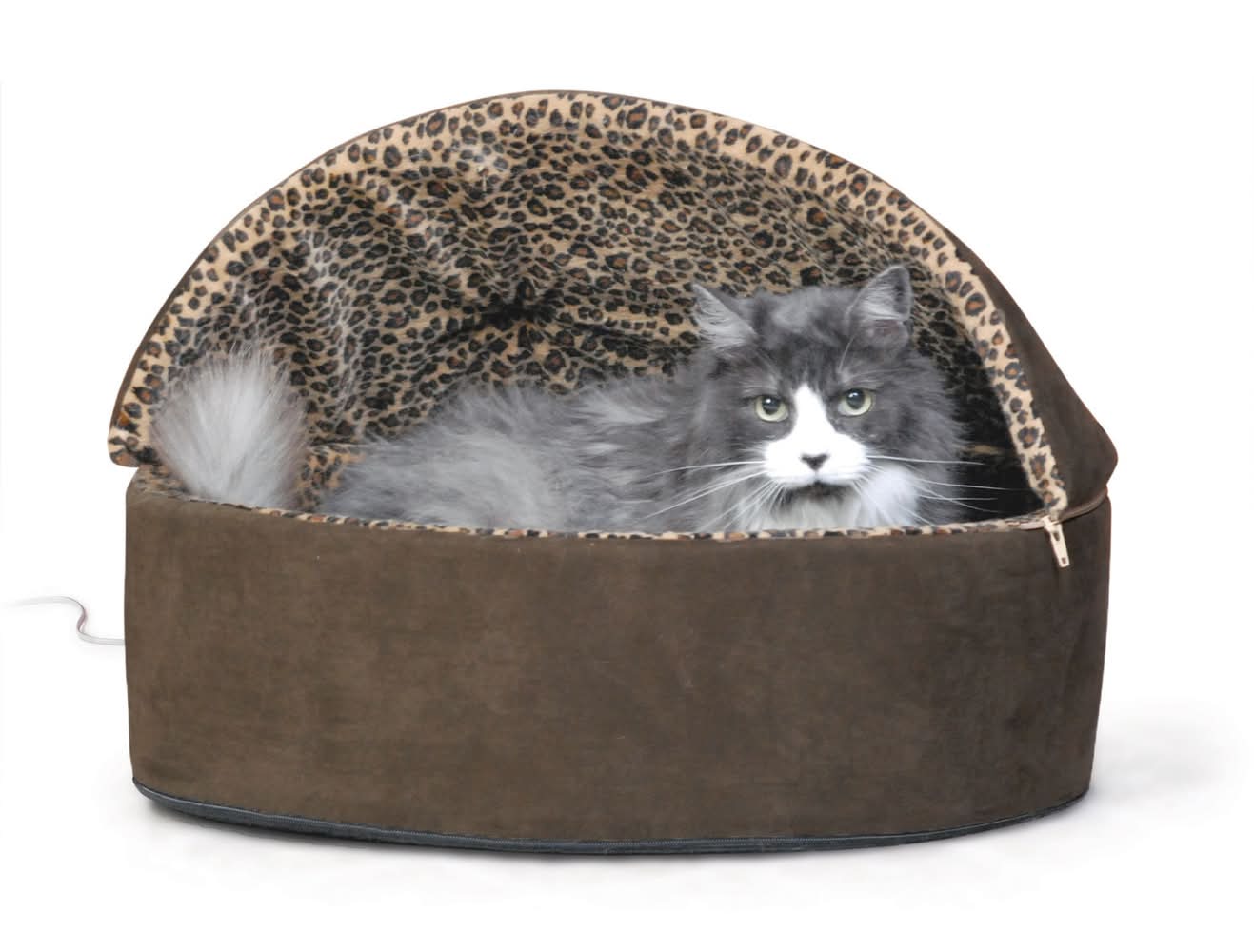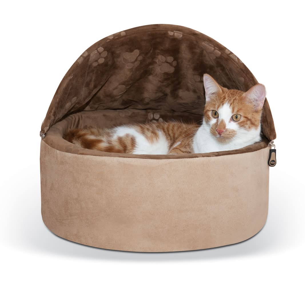 K & H Pet Products Self Warming Kitty Bed Hooded For Cat, 16 inches, Chocolate-Tan (1 lbs)
