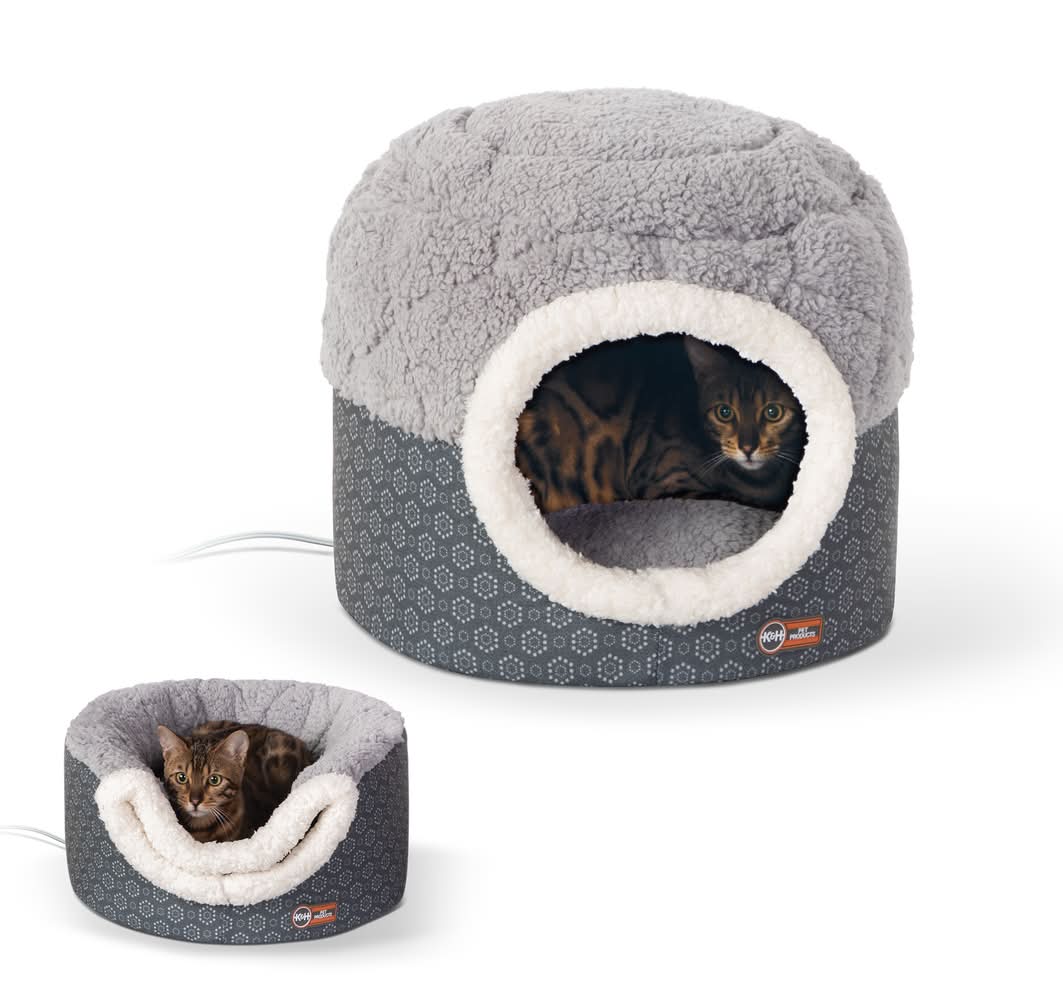 K & H Thermo-Pet Cave Cat Bed Heated, 17 X 15 X 13 Inches, Gray/Geo Flower