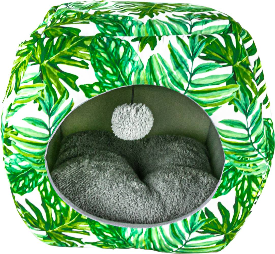 Play On Leaf Print Pop Up Cat Bed, 14x14x14 in, Green
