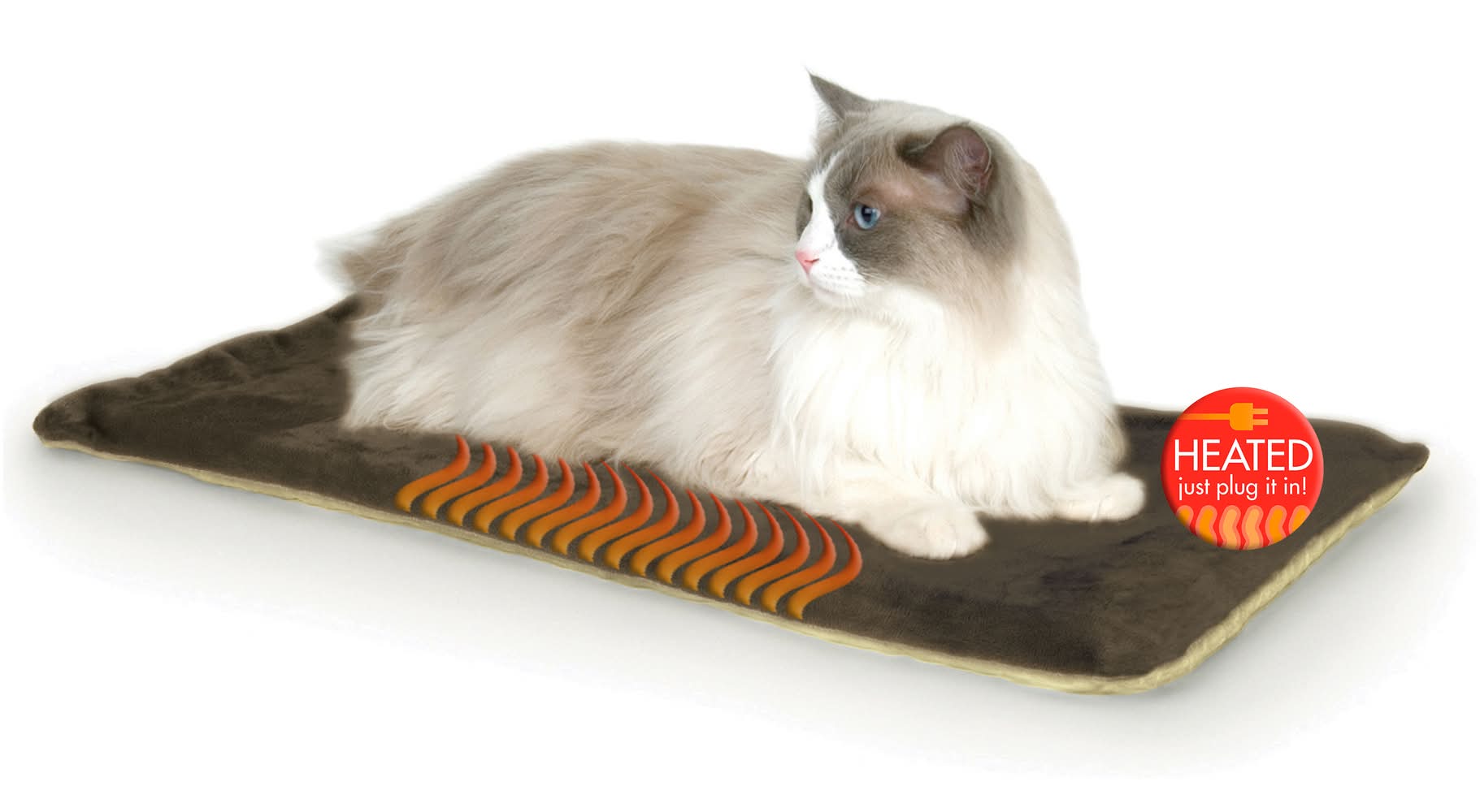 K & H Thermo-Kitty Mat Heated Cat Bed, 12.5 X 25 Inches, Mocha/Tan