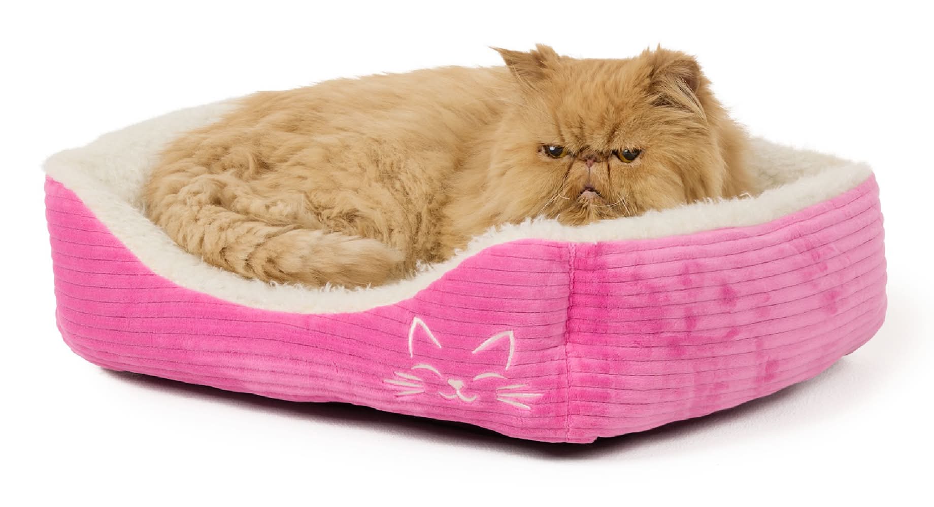 EveryYay Snooze Face Embroidered Rectangle Lounger Cat Bed, Pink