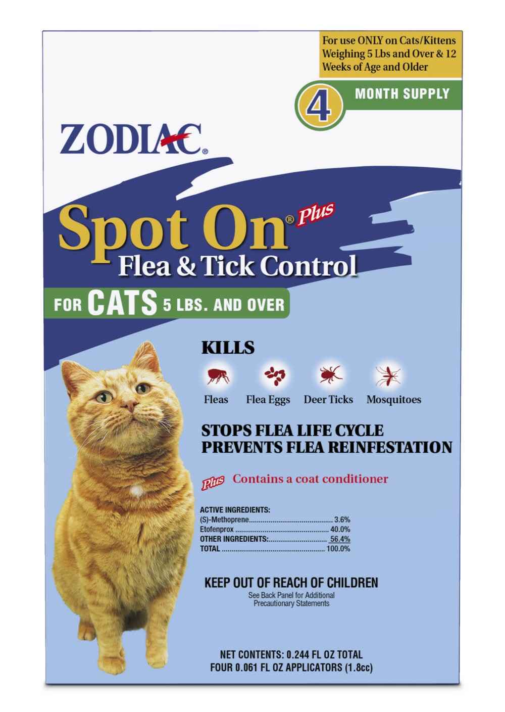 Zodiac Spot on Plus Flea & Tick Control For Cats (0.24 fl oz, 4 ct)