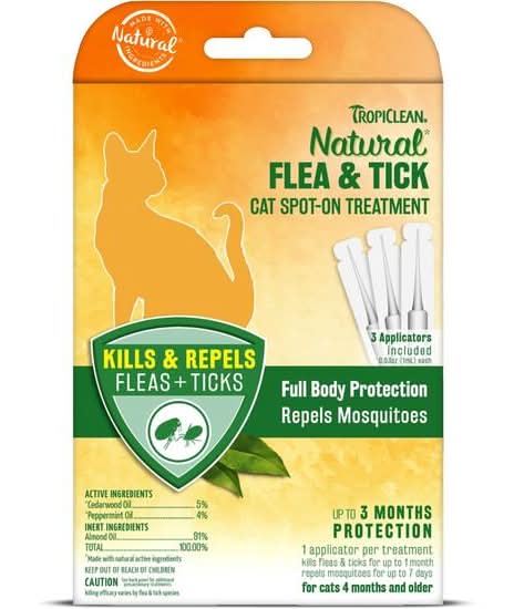 Tropiclean Natural Flea & Tick Spot-On Treatment For Cat, Count Of 3