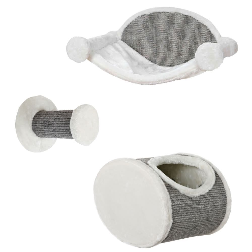 TRIXIE Liam Wall Mounted Lounge Set Hammock Cave and Step, Cream-Gray (3 ct)