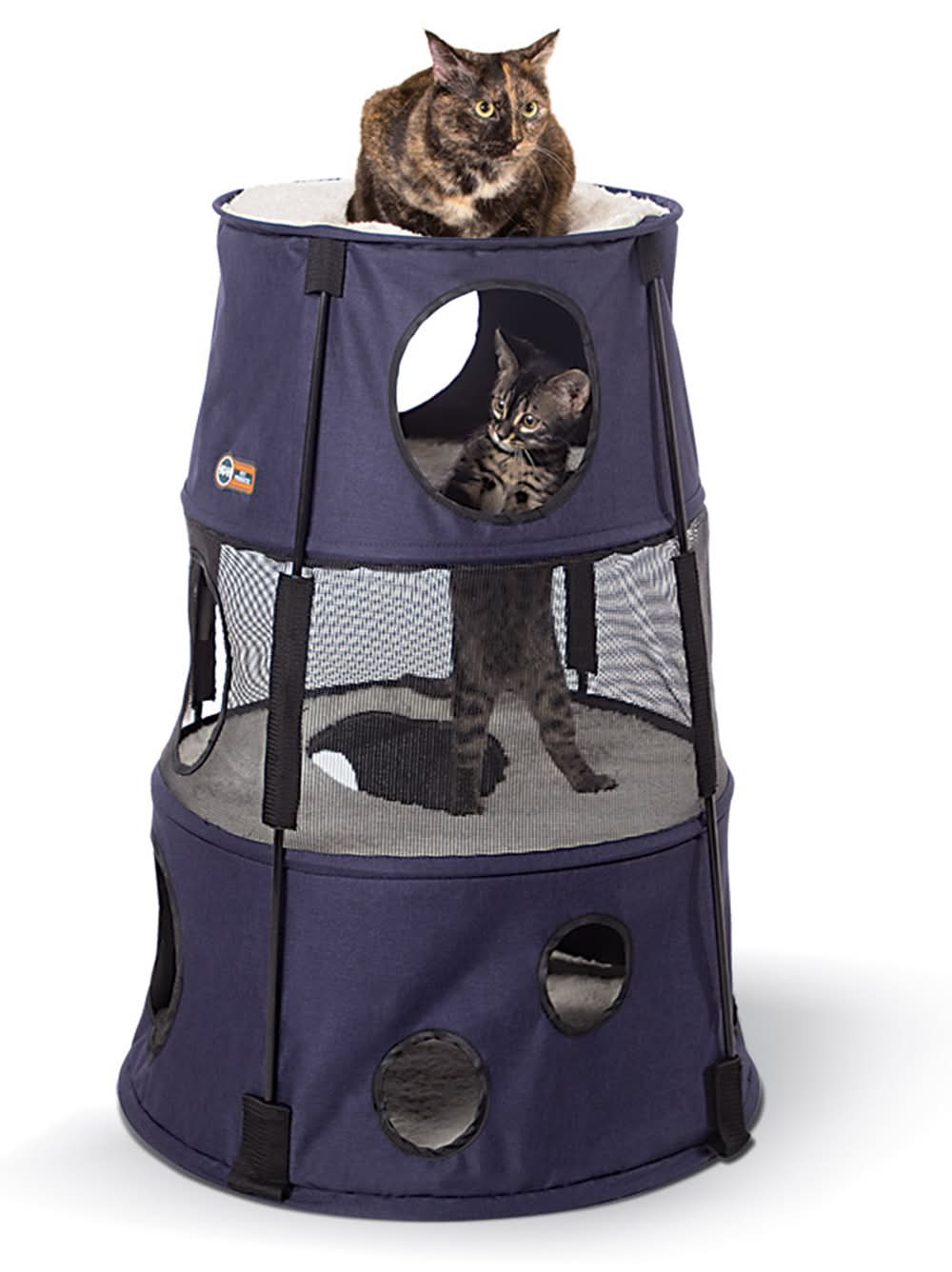 K & H Tower Tree Condo For Indoor Cats Modern Cute Cat Hammock Bed, Classy Dark Denim