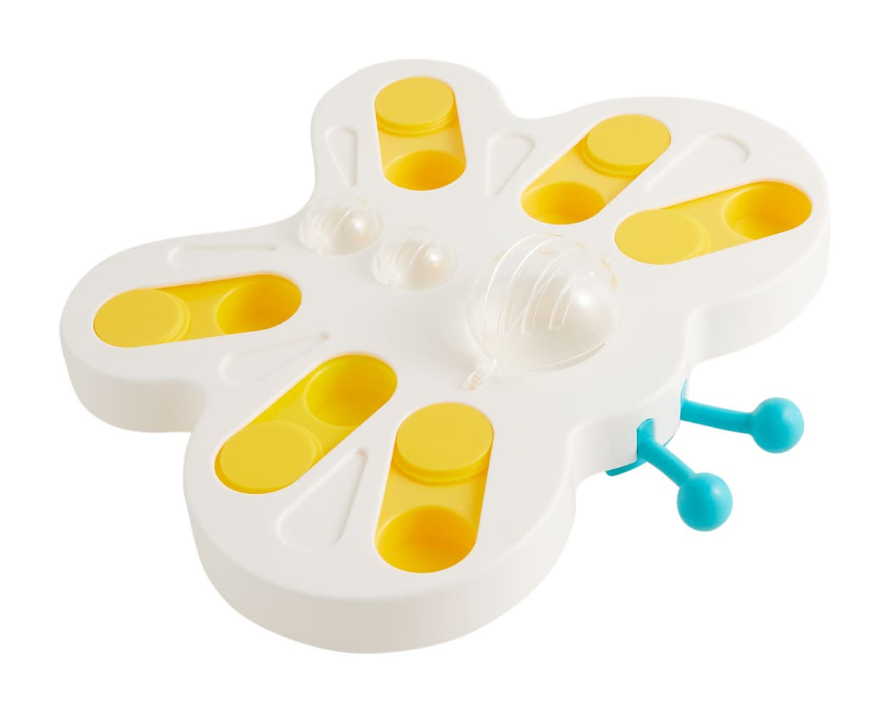 Whisker City Butterfly Treat Puzzle Cat Toy, White-Yellow- Blue