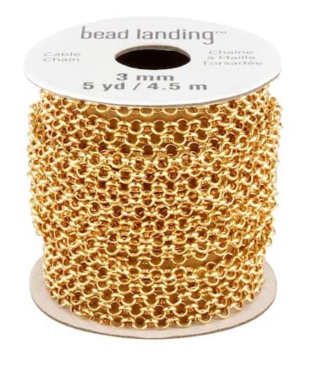 Bead Landing Curb Chain Spool, 5 yard, Gold