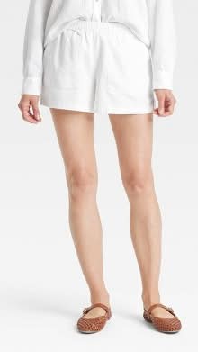 Universal Thread Mid-Rise Linen Pull-On Shorts, Women, M, White