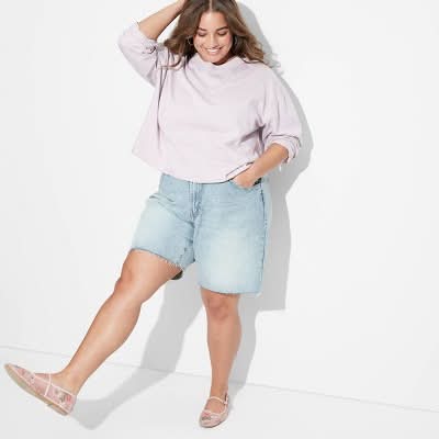 Wild Fable Heritage Mid-Rise Denim Shorts, Women, 17, Light Wash