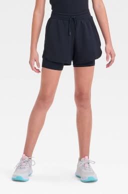 All In Motion Girl's 2-in-1 Active Light Run Shorts, L, Black