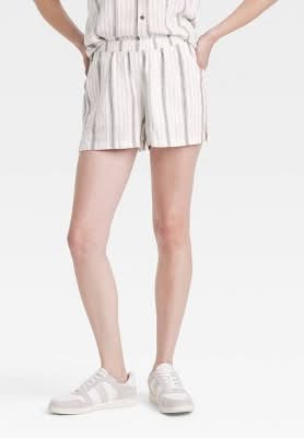 Universal Thread Mid-Rise Linen Pull-On Shorts, Women, M, Cream-Gray Striped