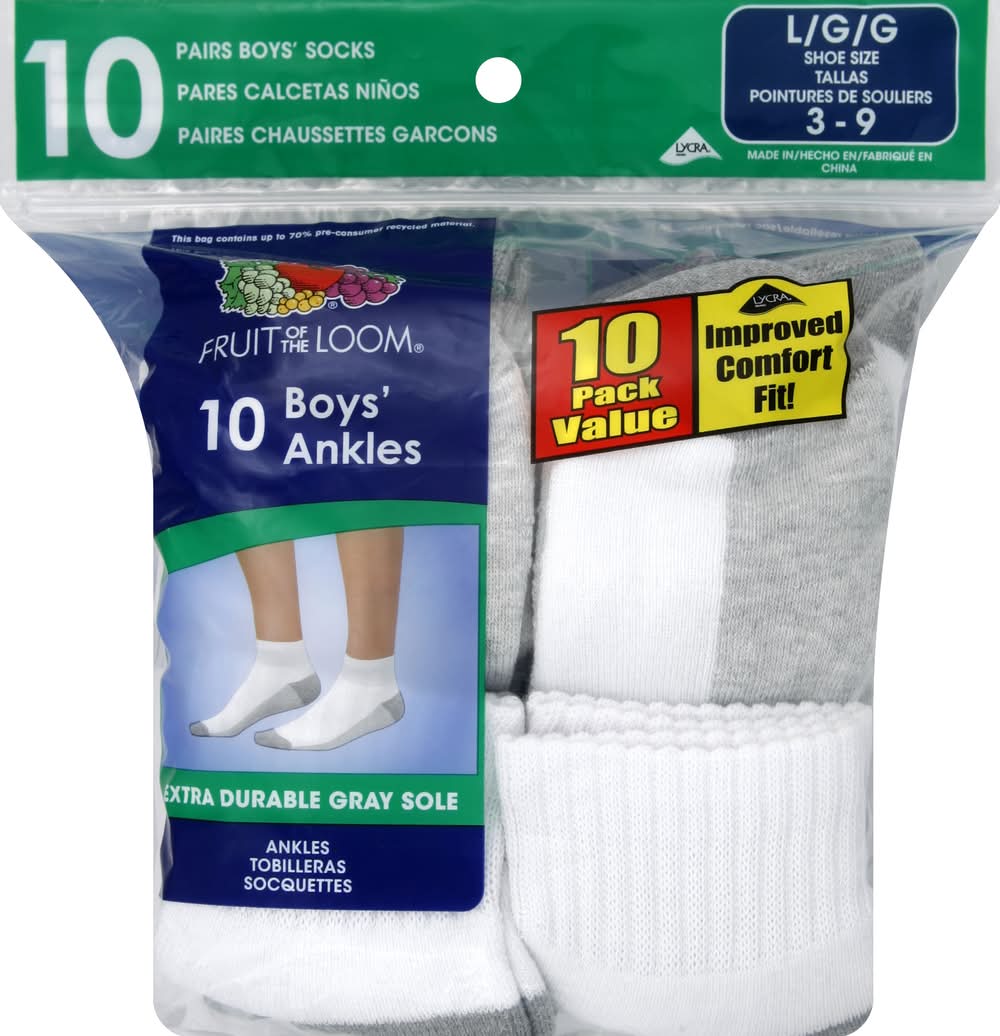 Fruit of the Loom Boy's Ankles Socks, L (10 ct)