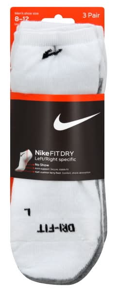 Nike Fit Dry Socks, size 8-12, White (3 ct)