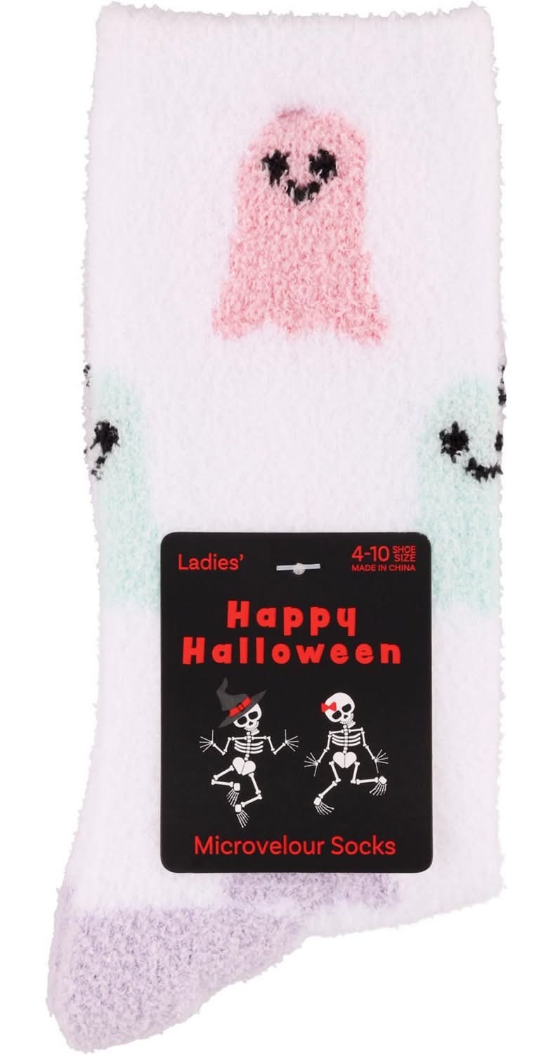 Spooky Village Happy Halloween Ghosts Lounge Crew Socks, Women, 4-10