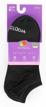 Fruit of the Loom Beyond Soft No Show Socks, Women, 4-10, Black (6 ct)