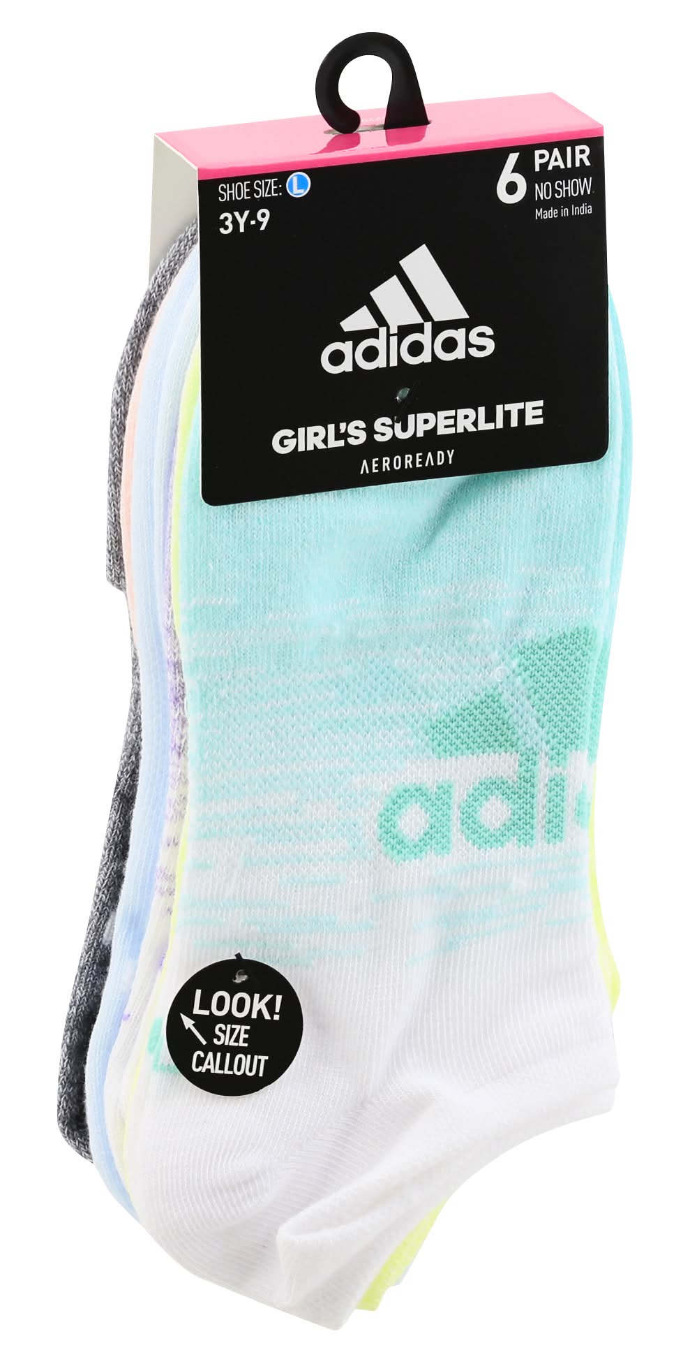 Adidas Girl’s Superlite Large Socks, Multicolor (6 ct)