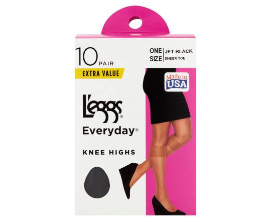 L'eggs Everyday One Size Jet Black Sheer Toe Knee Highs Extra Value, Black (10 ct)
