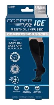 Copper Fit Ice Menthol Infused Compression Socks, S/M, Black