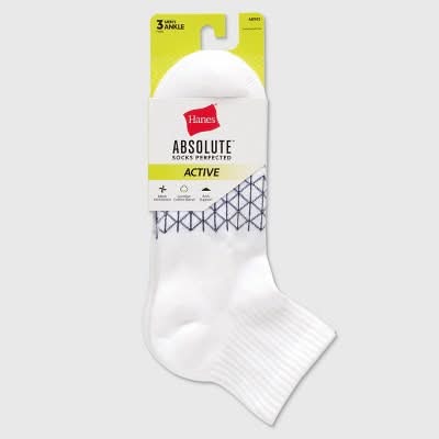 Hanes Absolute Active Cushioned Ankle Socks, Men, 6-12, White (3 ct)