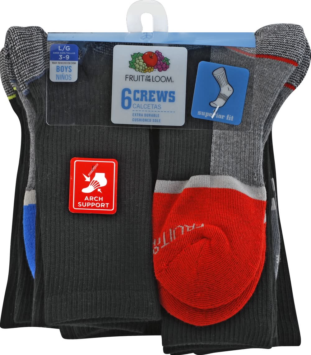 Fruit of the Loom Socks, Black-Grey-Blue-Red (6 ct)