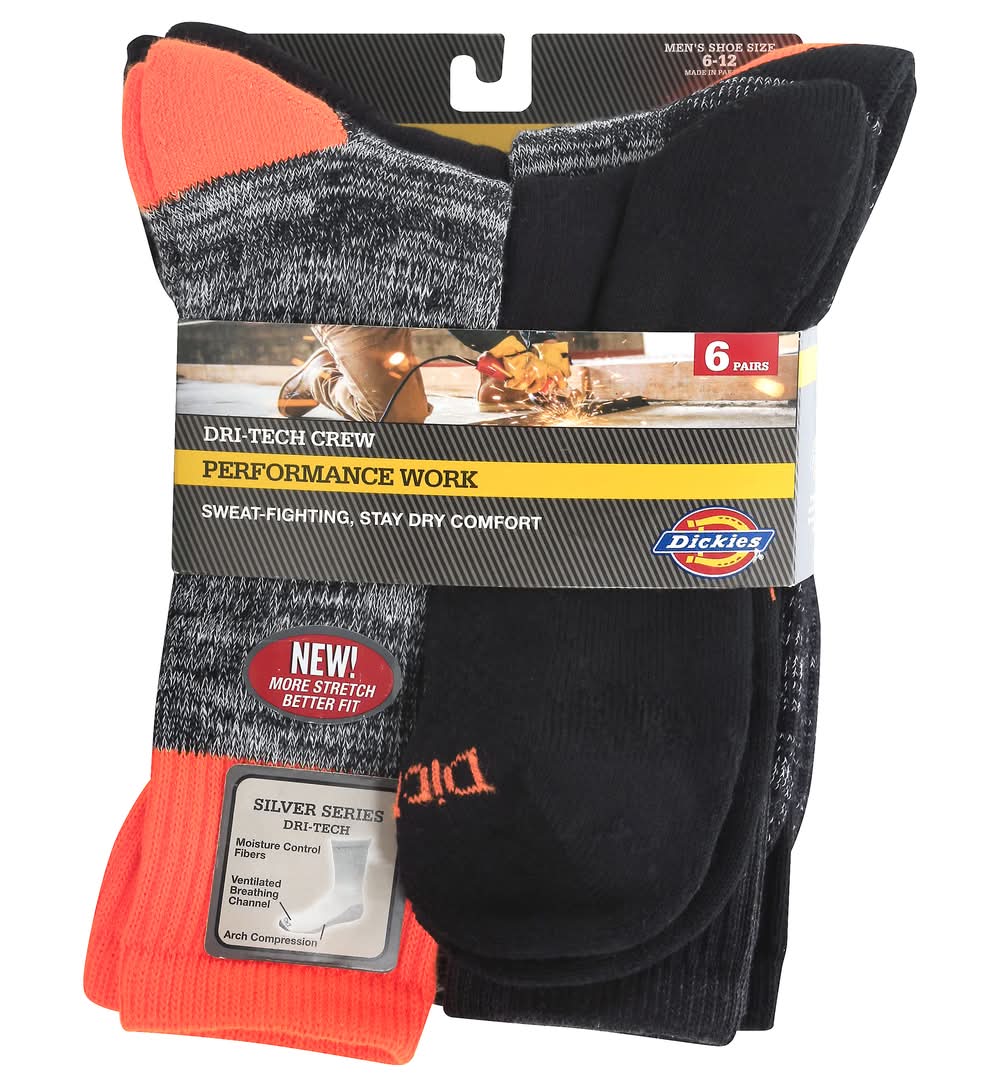 Dickies Dri Tech Crew Socks, 6-12 (6 ct)