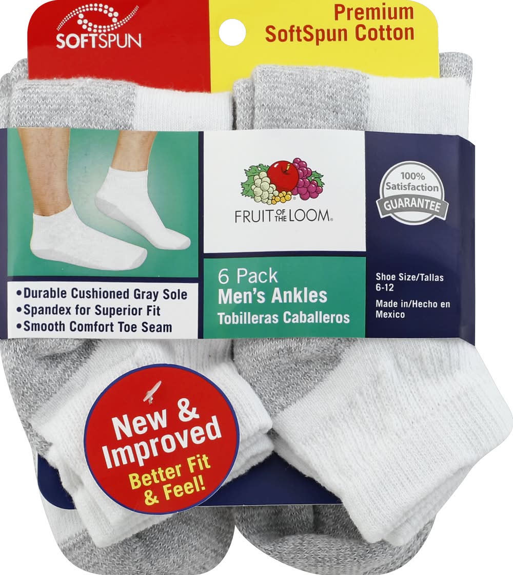 Fruit of the Loom Men's Ankles Socks, 6-12, White (6 ct)