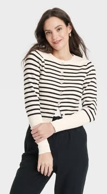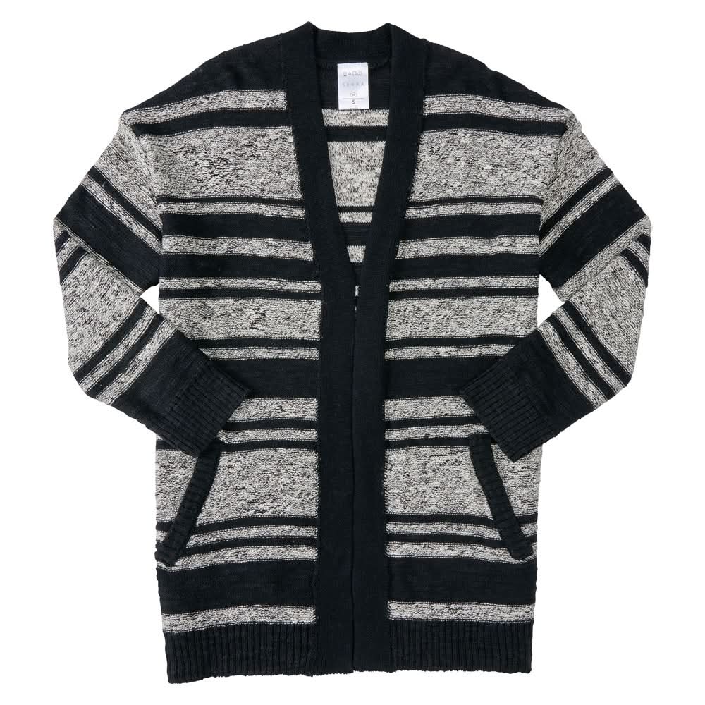 A New Day Long Sleeve Striped Rib Cardigan, Women, XL, Black-White