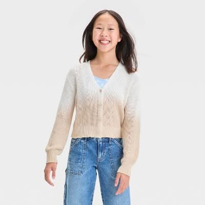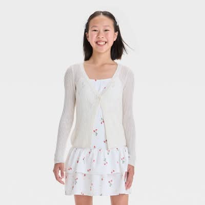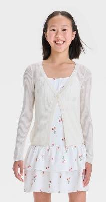 Cat & Jack Girls' Open Cardigan, XL, Cream