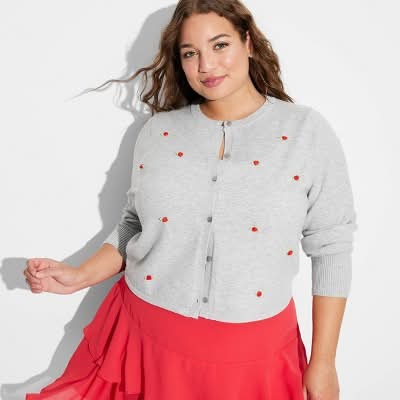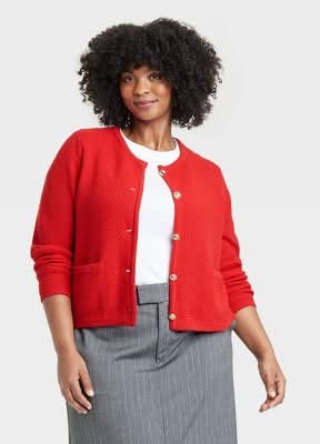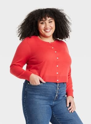 Ava & Viv Crew Neck Button-Front Cardigan, Women, 2X, Red