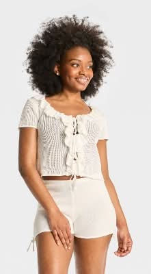 Wild Fable Ruffle Tie Cardigan, Women, S, Off-White
