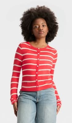 Wild Fable Featherweight Striped Cardigan, Women, M, Red