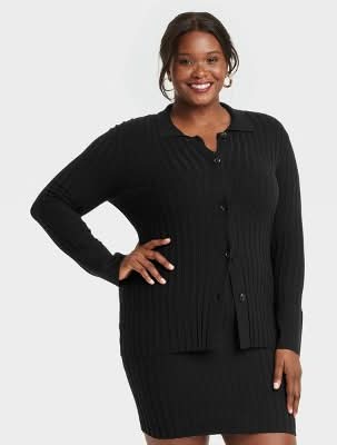 A New Day Polo Collar Button Down Cardigan, Women, XL, Black