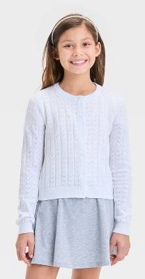 Cat & Jack Girls Long Sleeve Pointelle Cardigan, M, White