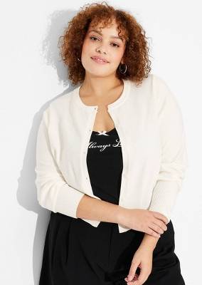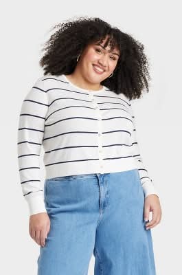 Ava & Viv Button-Front Cardigan, Women, 2X, White Striped
